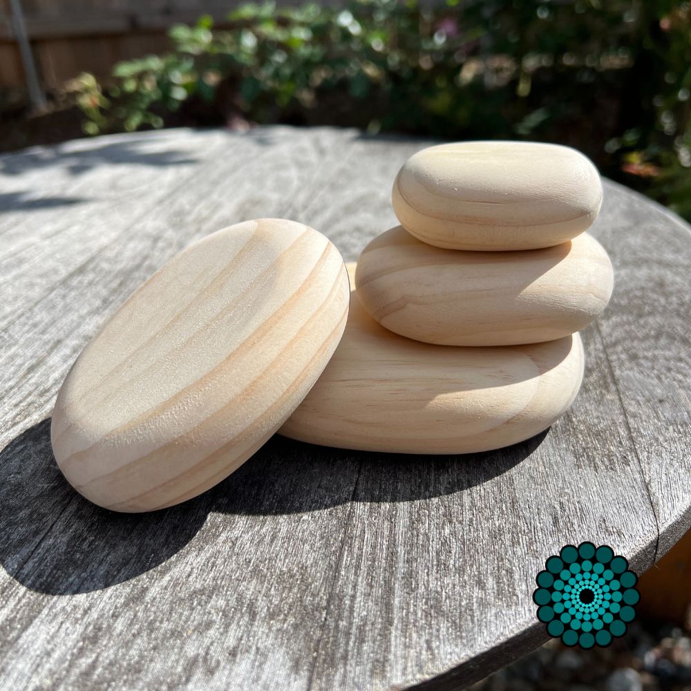 These unfinished smooth wooden pebbles are perfect for painting. These pebbles are light weight and easy to hold.