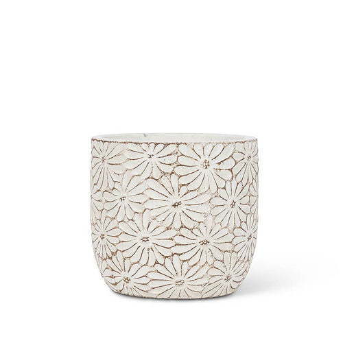 Sm Wht Daisy Round Planter-4"H